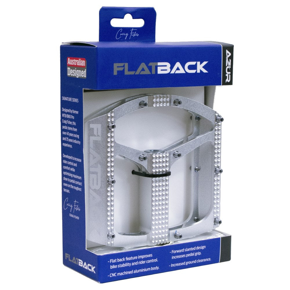 Introducing the Flatback Pedal, personally designed by Australian MTB/BMX Pro Craig Fisher. With over 40 years of racing and 35 years of industry experience, these pedals are built to increase rider control and comfort on even the roughest terrain. Get maximum shoe to pedal contact and take your riding to the next level!