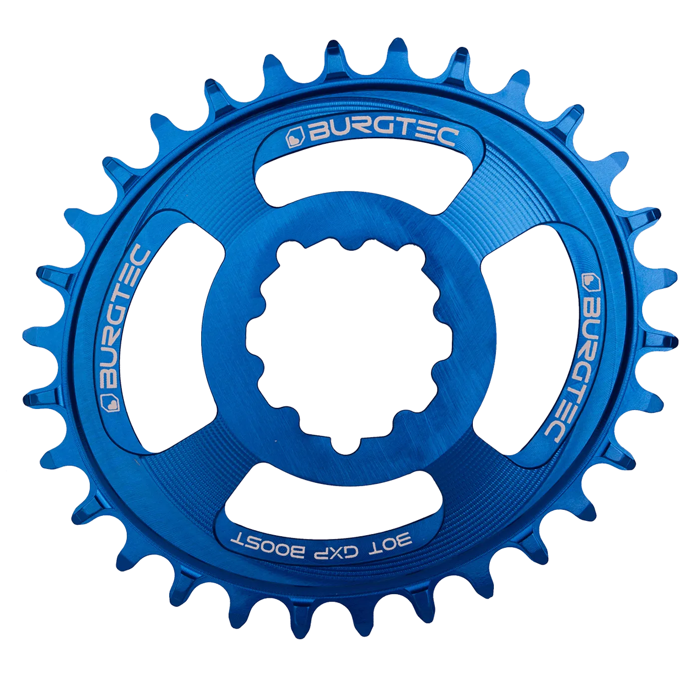Introducing Burgtec's OVAL Chainring Thick Thin - Sram Boost 3mm Offset. After extensive research and testing, the chainring provides 115% of mechanical advantage from the top center, shrinking the dead spot and giving flawless chain retention and quiet performance. Get back to your power phase rotation faster and enjoy the increased gearing.
