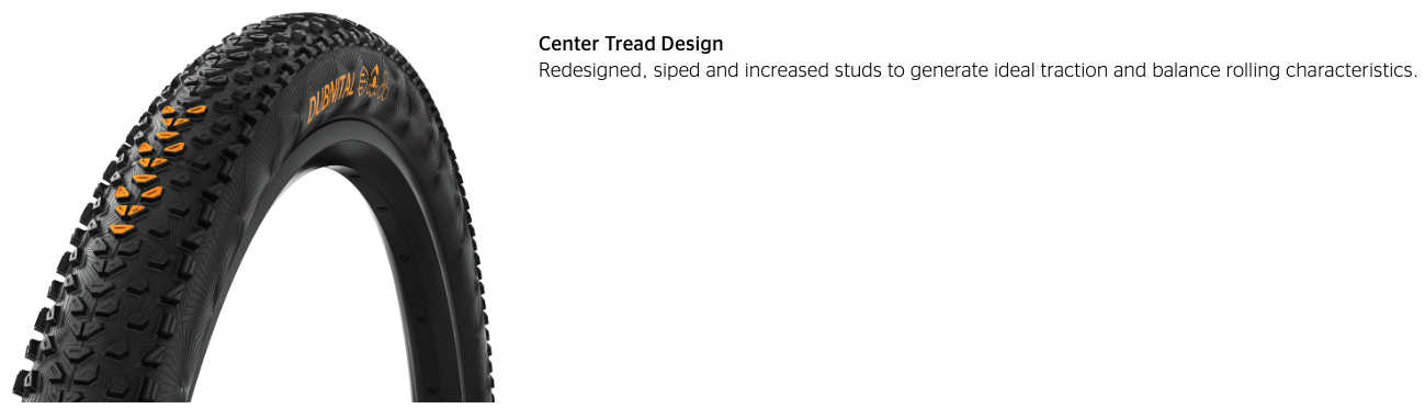 The Continental Dubnital - Race Grip is crafted for riders who demand speed and control on varied terrain. Its redesigned tread excels on rocky hardpack and medium loose trails, offering improved braking and cornering traction. Choose the Race carcass paired with the Rapid compound for maximum speed, or opt for the Trail carcass with the Grip compound for versatile performance. This tire supports your ride with confidence and agility, making every cross-country adventure faster and more enjoyable.