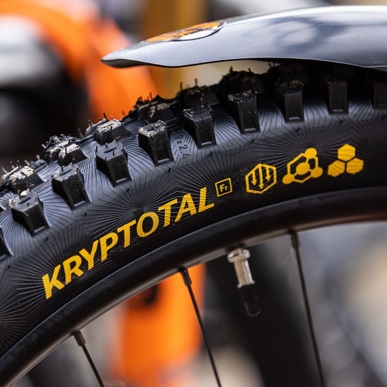 Push your limits with the Continental Kryptotal-Front Downhill Supersoft MTB Tyre. Its optimised design for front wheels balances grip and stability, delivering explosive acceleration and braking power to conquer trails with ease. With a reinforced carcass and supple characteristics, you'll feel unstoppable from the first drop-in to the last. Make sure your downhill adventures come equipped with the Kryptotal-Front and let the good times roll! Your new tire of choice!
