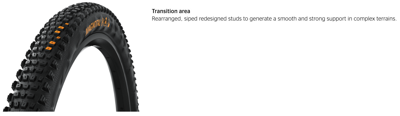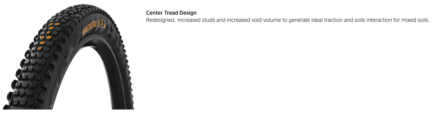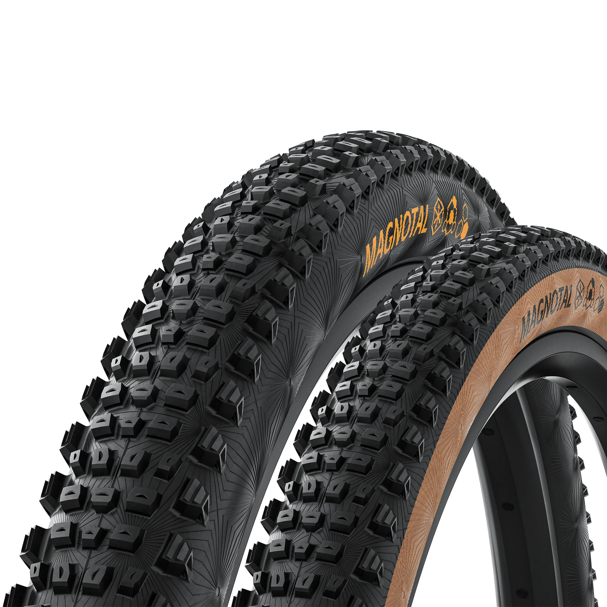 Continental’s Magnotal tire bridges the gap between downcountry and trail riding, delivering exceptional performance across diverse terrains. Designed for rough trails and wet conditions, its tread enhances cornering and braking grip while reducing rolling resistance with durable, closely spaced lugs. Built with a trail-oriented carcass and available in Grip and Soft compounds, Magnotal lets you choose the perfect balance for your cross-country, trail, or all-mountain adventures.