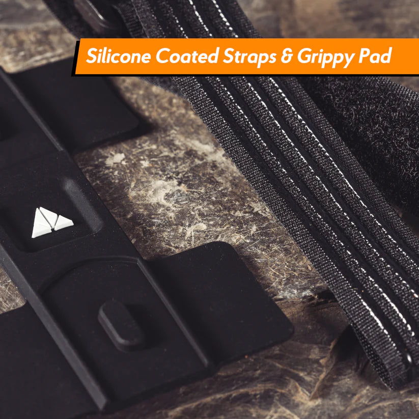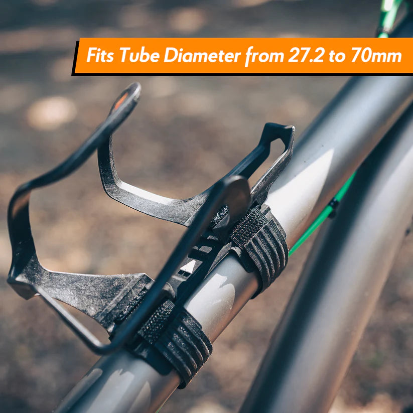 The Aux Strap Kit includes everything you need to attach the cage to almost any bike frame in almost any location. Utilising silicone coated hook-and-loop straps and grippy rubber pads for a rock-solid fit that won’t leave your bottle on the trails, or marks on your frame.