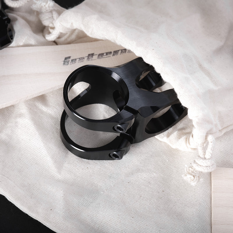The Intend GRACE OS EN stem is indestructible, precise and the best technical solution to combine 2 cylindrical tubes to each other. 4 titanium bolts in black, rounded edges to avoid any stress at the handlebar clamp. Downhill-ready with the lowest weight of a stem in this size.