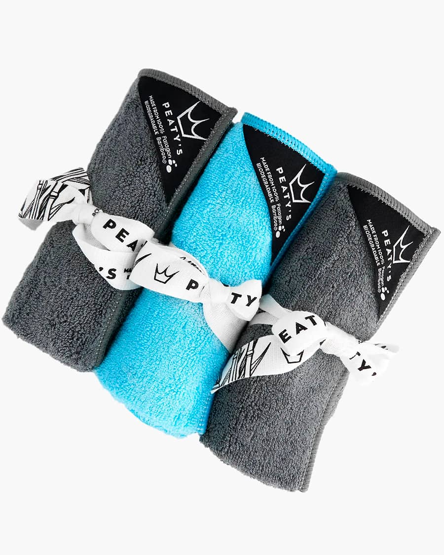 Peaty's Bamboo Bicycle Cleaning Cloth set consists of 3 cloths to ensure theres no cross contamination while drying different parts of your bike.