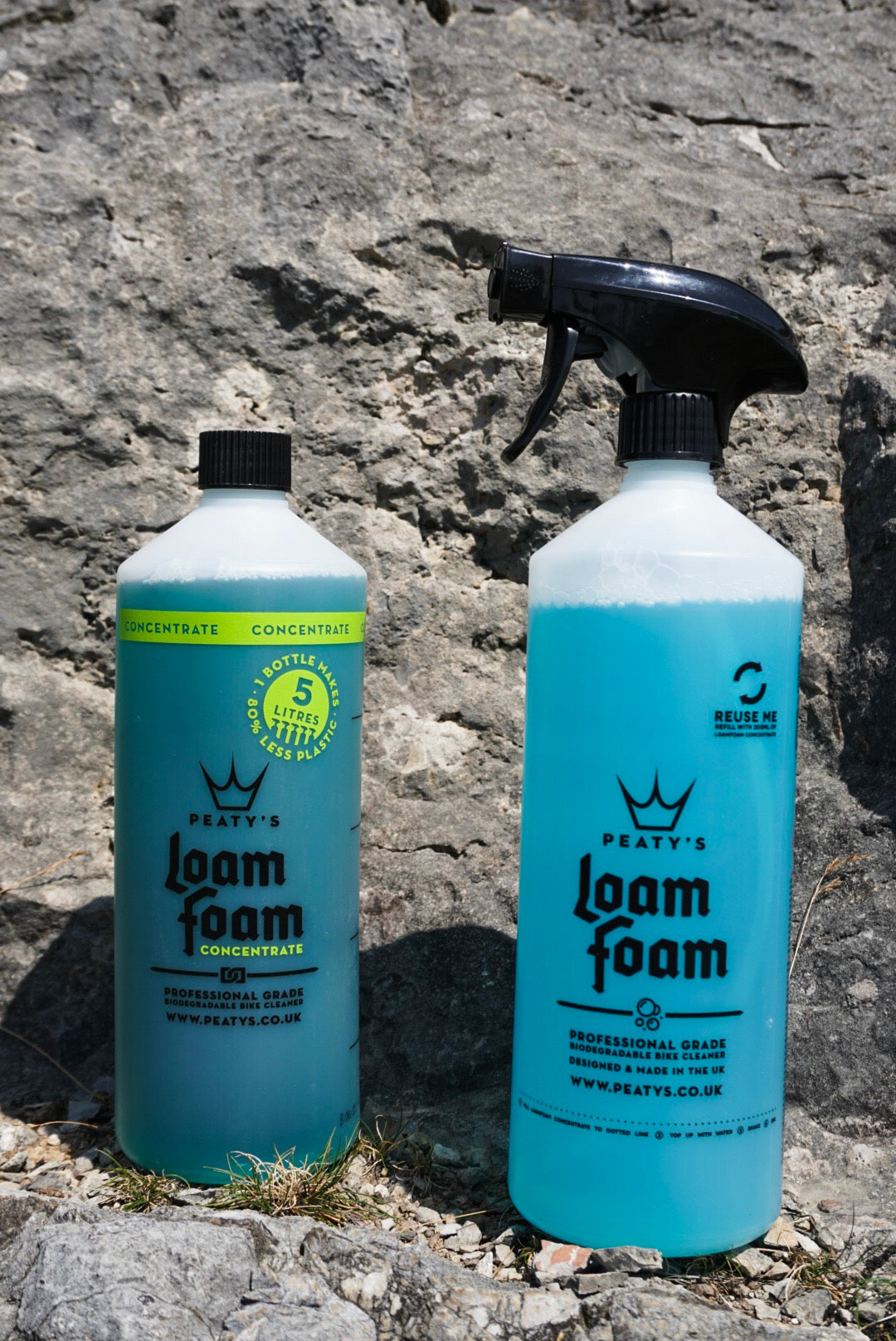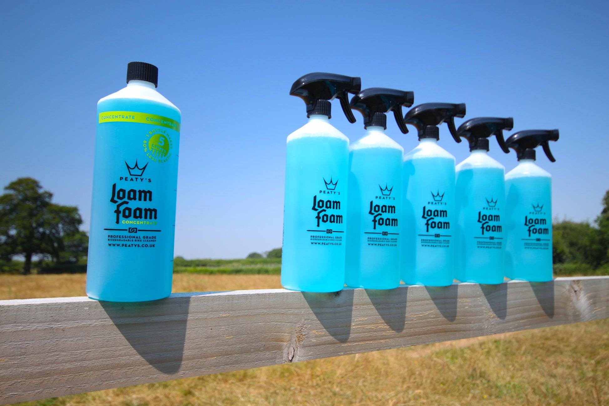 Go from filthy to race ready with this starter pack containing 1 Litre of Peaty's biodegradable LoamFoam bike cleaner and 1 litre of LoamFoam Concentrate Making 6 litres of cleaner in one box .
