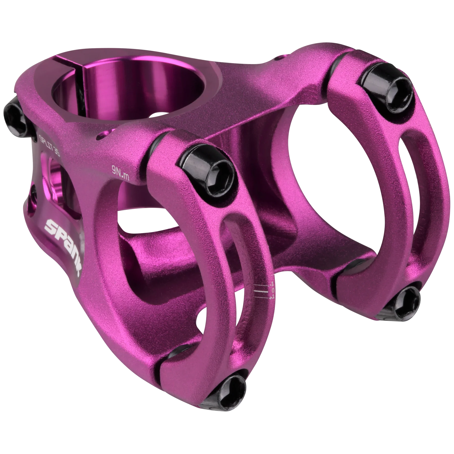 Introducing the Spank Split 35 Stem, the perfect choice for Enduro riders! This amazing stem comes with a 35mm clamp and features an index system printed on one of the clamping plates, allowing you to get your handlebars just right. It also has an ultra-short stack height, so you can fit most bikes with a short steerer tube. Not to mention, the shotpeen-anodized surface that provides strength and durability. Get ready to take your riding to the next level!